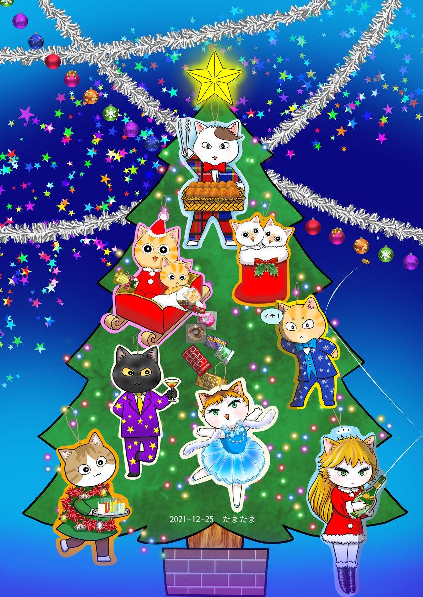4 15 2021年クリスマスイラスト #オリジナル #イラスト #猫 #猫耳 #クリスマス #ツリー #オーナメント pixiv.net/artworks/94997… 21/12/25 03:16
