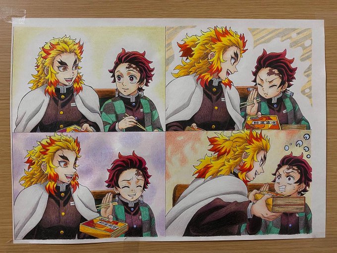 1 4 50枚目の鬼滅の刃イラスト、初めて描く玄弥君とアオイちゃん&すみちゃんが完成✨🍀 箸の色を間違えました💦(たぶん木の色が正解) 今週は祝日もあったので、まとまった時間は取れなかったのですが、少しずつ塗り進めて何とか完成しました🎨💨 #鬼滅の刃イラスト #アナログイラスト #色鉛筆イラスト 23/02/27 00:02