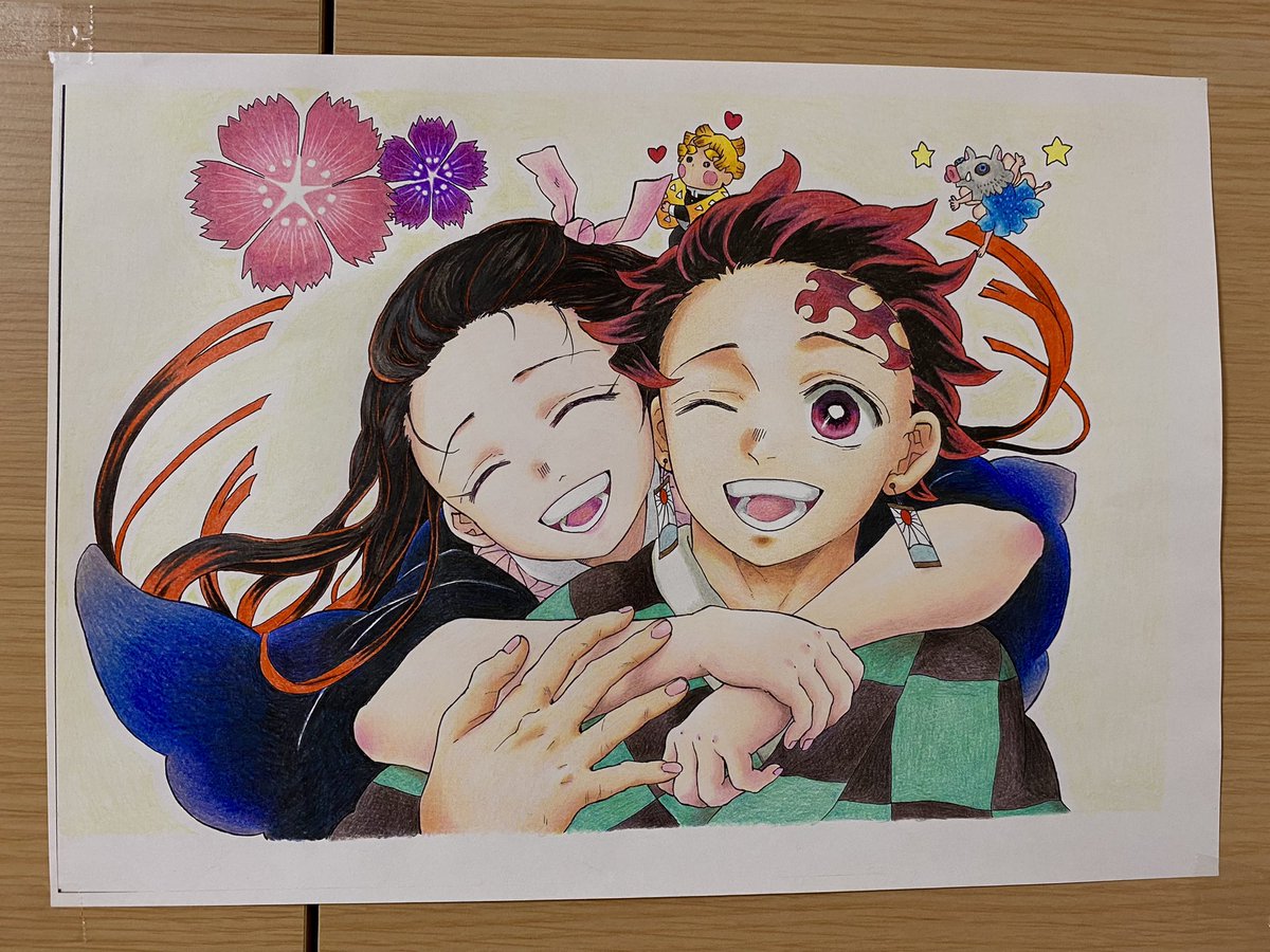今年のイラストが全然間に合わなかったので、去年のイラストの再掲すみません💦 炭治郎、誕生日おめでとう🎉🎂🎁🎊💐🍀✨ #鬼滅の刃イラスト #アナログイラスト #色鉛筆イラスト #模写 #炭治郎 #過去絵