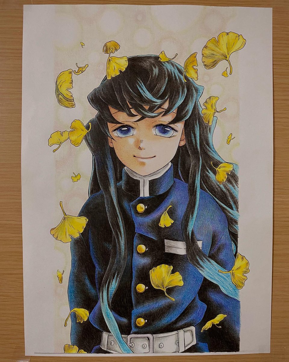 0 8 36枚目の鬼滅の刃イラスト、初めて描く宇髄さんが完成✨💎 やっぱり目が少し大きかった^^; 隊服の色が向かって右と左で少し違ってしまったけど(重ね塗りあるある?w)、 色を探りながら塗っていくのは楽しかったです🍀 #鬼滅の刃イラスト #アナログイラスト #模写 #コピー用紙 #色鉛筆イラスト 22/05/19 22:38