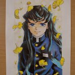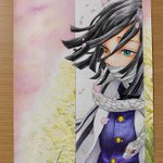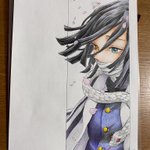 51枚目の鬼滅の刃イラスト、画集描き下ろしの冨岡さんの途中経過です🎨 色の塗り始めで、瞳を塗る前だからか少し怖い感じに^^; 今週末以降続きを塗っていく予定です💨 #鬼滅の刃イラスト #アナログイラスト #途中経過 #コピー用紙