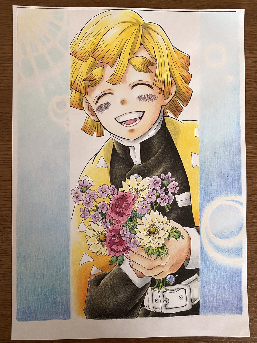 まだ悲鳴嶼さんの誕生日イラストも完成していないので、去年のイラストの再掲すみません💦 善逸、誕生日おめでとう🎉🎂💐 純粋なる命の危機に対しては臆病かもしれないけど(笑)人に対しては臆病ではないと思う、強くて優しい☺️ #鬼滅の刃イラスト #色鉛筆イラスト #善逸 #誕生日イラスト #過去絵