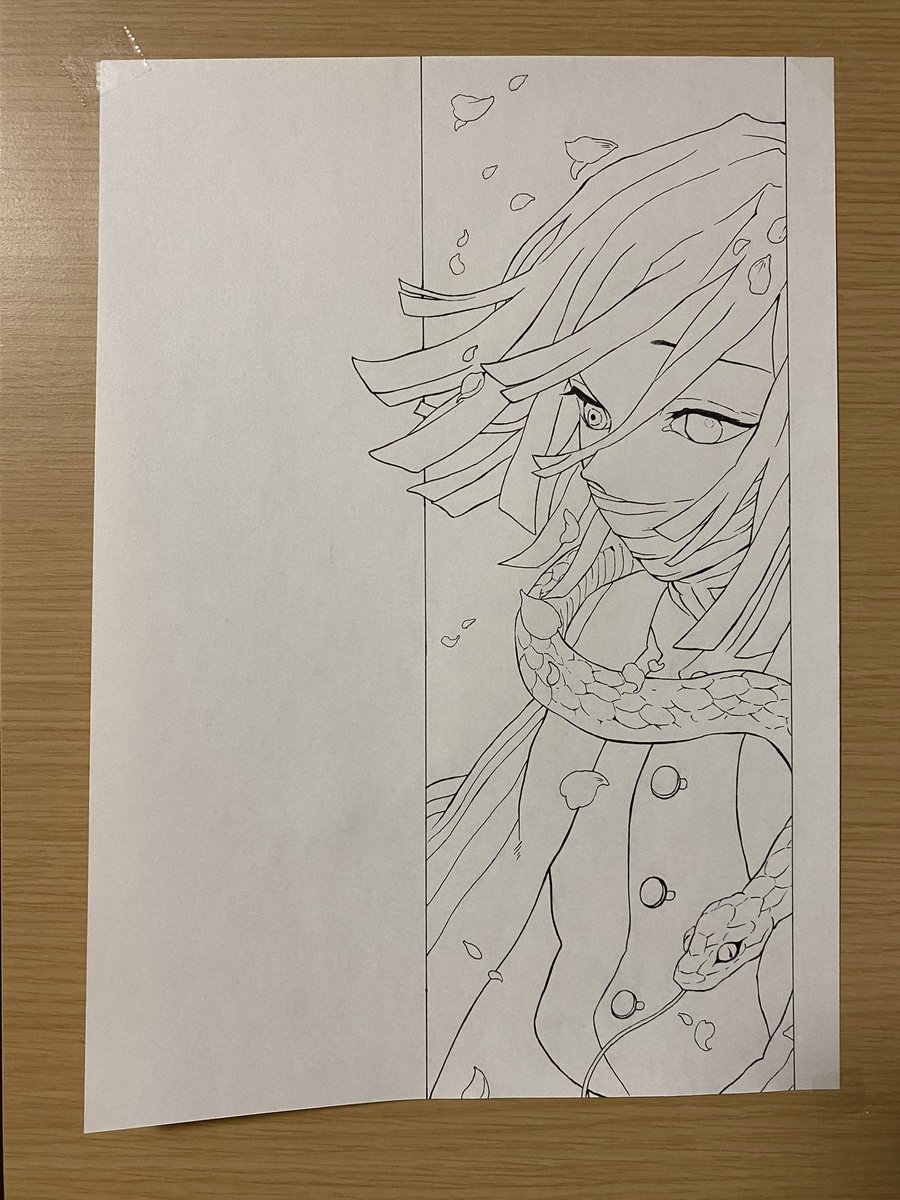 2 28 36枚目の鬼滅の刃イラスト、初めて描く宇髄さんの途中経過(線画)です✒️ 目が少し大きくなってしまった^^;💦 色を塗ったら、ますます目の大きさが目立つかもしれないけど👀💦色を塗っていく予定です🎨 #鬼滅の刃イラスト #アナログイラスト #目視模写 #宇髄天元 #途中経過 #コピー用紙 22/05/16 20:22