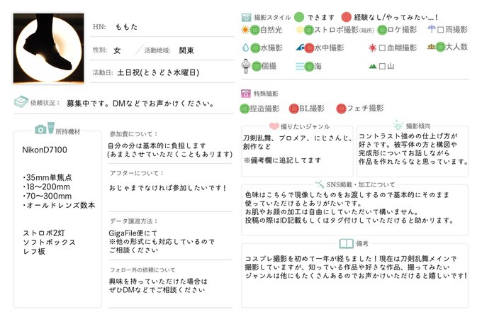 コスプレ撮影を始めて一年経ったので、プロフィールのようなものとしてまとめました…! 来年もたくさん撮影していきます! #カメコプロフ #レイヤーさんと繋がりたい #カメラマンさんと繋がりたい