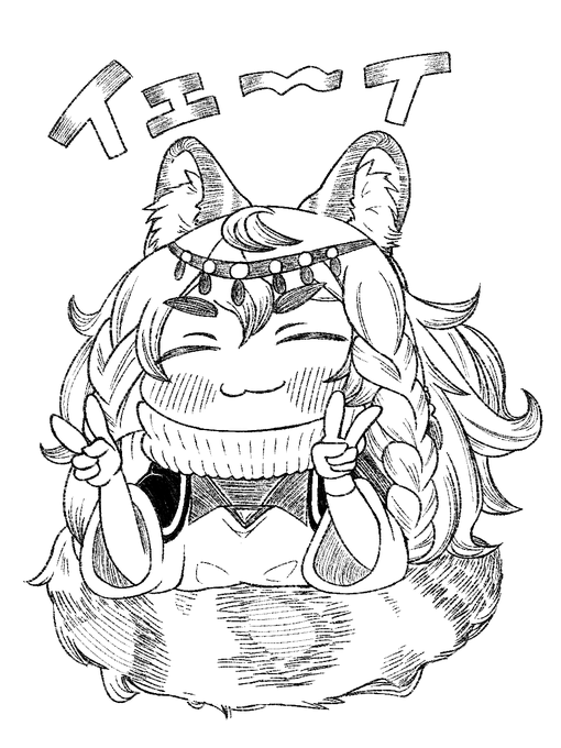 101 454 焼きイカを食べる可山さん家のプラマニクスのファンアート。線画だけで表現するの難しい……。 23/06/13 02:24