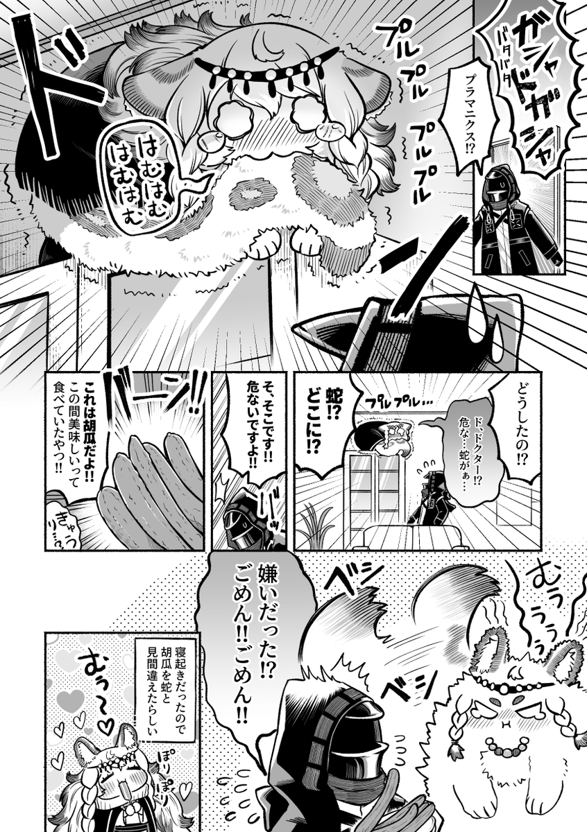 続プラマニクスと差し入れをするドクター。 (ユキヒョウも猫なのでたぶん蛇が苦手) コミッションのプラマニクスの漫画です。すごく可愛いので皆さんも見て下さい。 こちらは可山@bokiboki333さんに作成してもらいました。 #アークナイツ