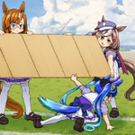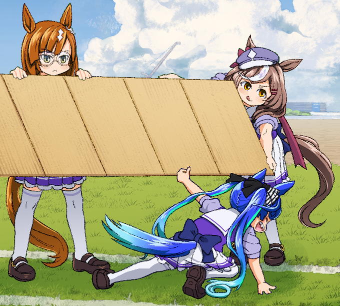 ジェットブラストデフレクター係のイクノとマチタン、最終チェック係のターボ。 #ウマ娘