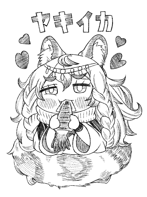 焼きイカを食べる可山さん家のプラマニクスのファンアート。線画だけで表現するの難しい……。