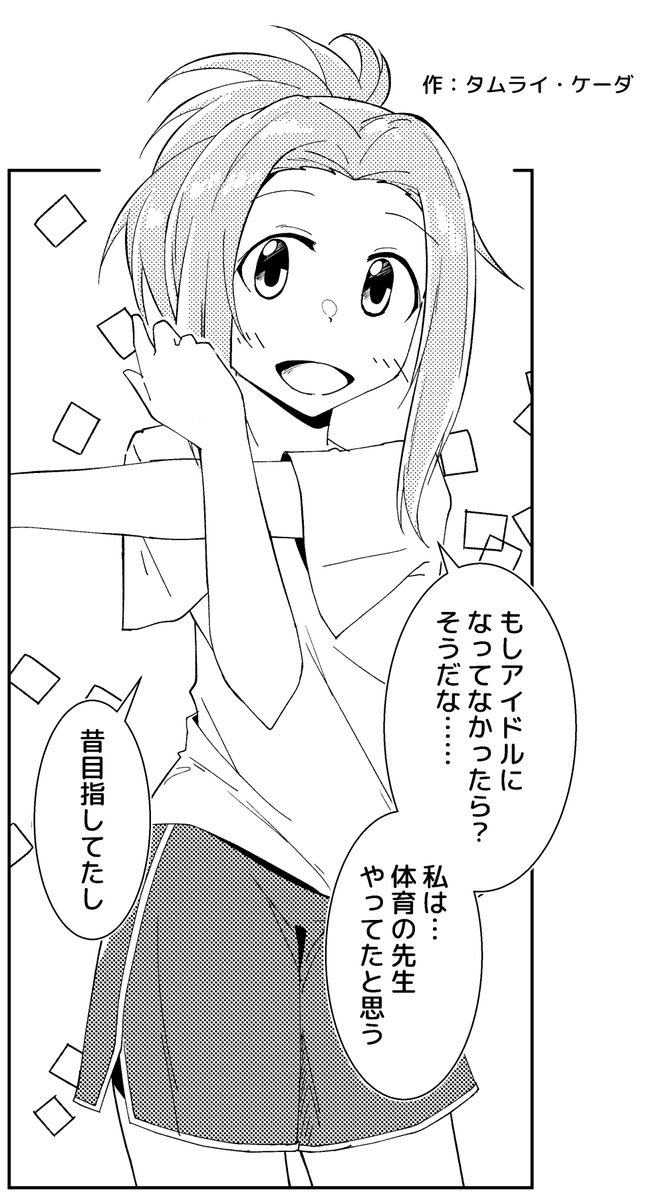 こちらの真鍋いつき合同誌に漫画2ページ寄稿させて頂きました。 アイドルになる前は体育の先生を目指していたという、いつきさんの”IF”を描きました。 よろしくお願いします。 twitter.com/WBG0926/status…