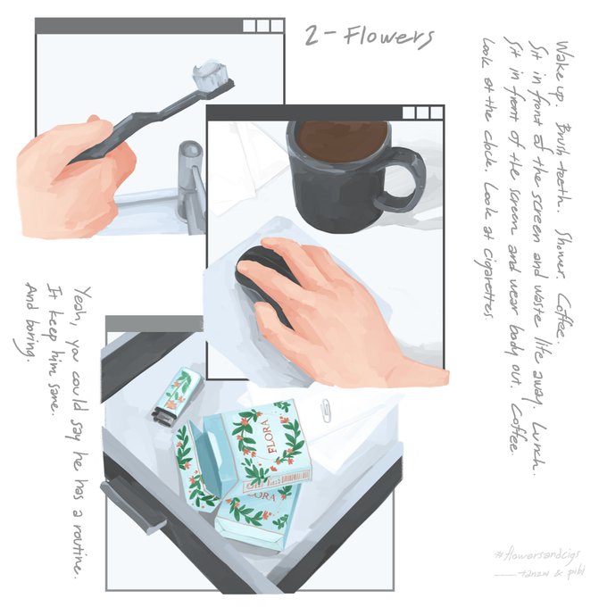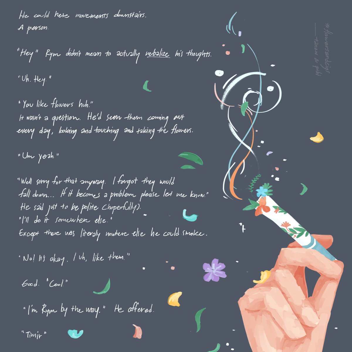 1/8 - Cigarettes #flowersandcigs (เป็นครั้งแรกเลยที่เล่าเรื่องราวมากกว่าภาพไม่กี่ภาพ เพราะคุยกับเพื่อนแล้วชอบมากๆๆๆ จนอยากให้ทุกคนมาชอบเรื่องของพวกเค้าเหมือนที่เราชอบ😭)