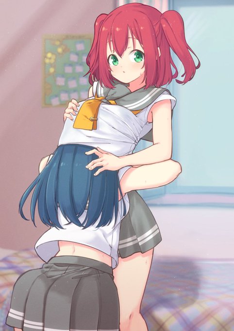 ルビィと善子が勉強会するっていうので飲み物とか持って行ったら「オギャア、ルビィから生まれる~~」って言いながらルビィのお腹に潜り込んでる善子ちゃんを目の当たりにしてから、妹と視線が合った黒澤ダイヤ視点のイラスト描きました。よしルビってやつやね…ッ