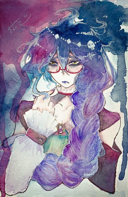 11 48 💀+👓+三つ編み #twstファンアート #透明水彩でtwstファンアート 22/03/11 20:55