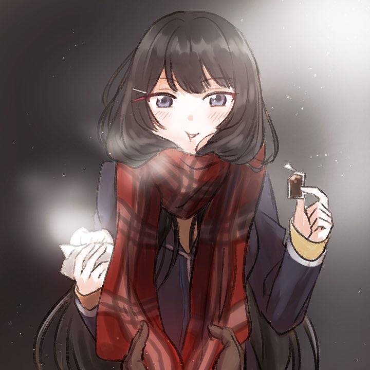 25 80 冬のコンビニで両手が塞がっているのでマフラーを巻くよう頼んでくる幻覚 #みとあーと 21/12/13 00:02