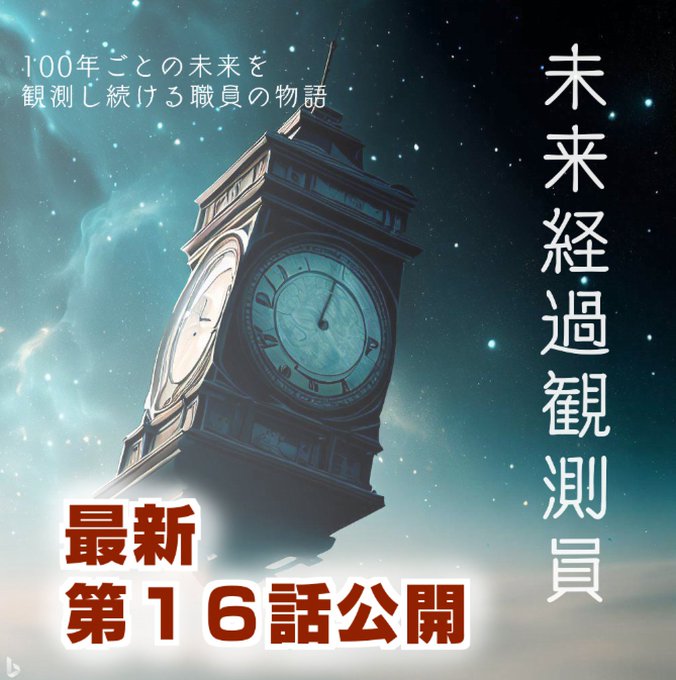 最終話公開しました! 漫画ではないオリジナルSFを小説で描き切ったのは初めてでしたが、とても楽しく書けました。 お付き合いくださり、ありがとうございました!!! 第20話 定点観測<1600年目…そして> 未来経過観測員/田中空 - カクヨム kakuyomu.jp/works/16817330…