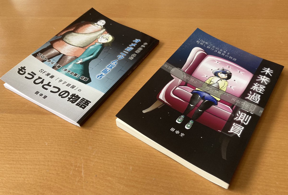 SF小説「未会経過観測員」のペーパーバック版が発売されました。(写真はサンプル版なので変な帯がついてますが、こんな感じでございます。比較でタテの国外伝を並べました) 紙派の方はぜひ!!! amzn.asia/d/3db1Qz7 twitter.com/tanaka_kuu/sta…