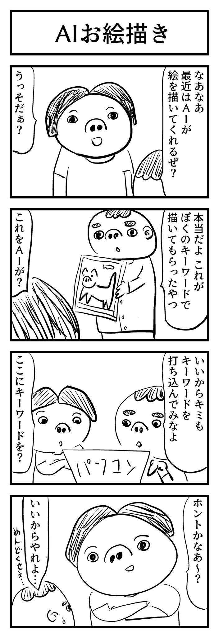 こんばんは。本日も4コマ漫画です。はやり(?)の #AI にちなんでみました。 #4コマ #4コマ漫画 #漫画 #漫画が読めるハッシュタグ