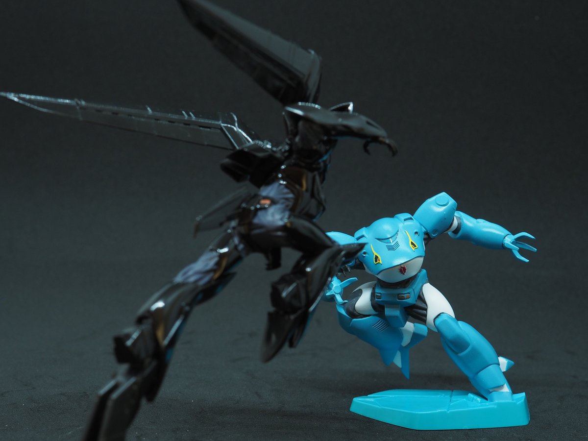 #今月作ったプラモ晒そうぜ グリフォン完成です。今月はこれひとつ。Mr.カラーのブラックにクリアーかけたあとシタデルで関節カバー筆塗り。メタリックレッドにクリアレッドを重ねたバイザーの赤が綺麗に発色して嬉しい☺️ #PLAMAX #パトレイバー #マックスファクトリー