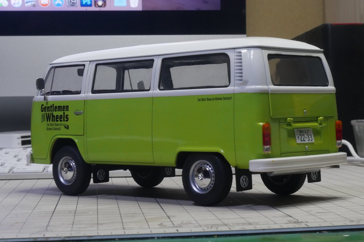 昨年11月ごろから作り始めたドイツレベルのVWtype2レイトバス、年末年始のお休みを使って大体形となりました。そういやこいつのドアミラーのパーツを折って床に落としたのを探していたら年を越したんだよね。#今月作ったプラモ晒そうぜ #ショップカー #VWtype2