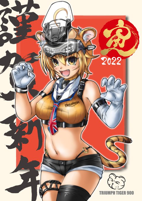 あけまして年賀状(大遅刻) 今年は寅年なので"寅イアンフ"の"タイガー(寅)900"の登場だ! 改めまして今年もよろしくお願いします #TRIUMPH #TIGER900 #バイク擬人化 #年賀状 #寅年