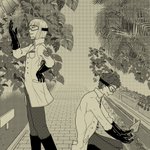 プールサイド九条さん胸に刺してるグラサンかけてくれ~~~と思いながら描きましたが髪型もいつもと違うのでもう誰がなんやらさっぱりわからなくなってしまったけど個人の願望だから許されたい
