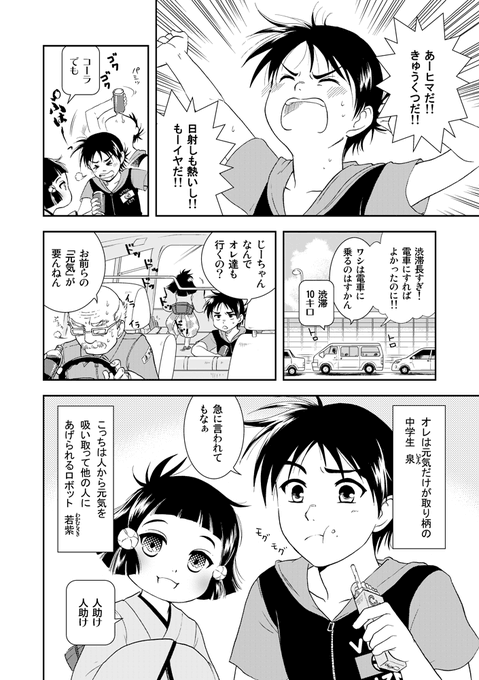 祇園祭4年ぶりの通常開催おめでとうございます! ということで、ちょっとだけ祇園祭の様子が出てくるマンガを。 元気を吸い取って他人にあげられる幼女ロボットのお話。(1/3) #マンガが読めるハッシュタグ