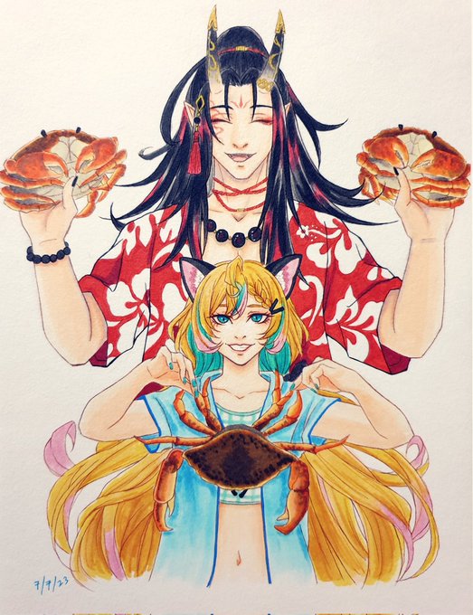 Happy 4 months, Luxiem! ❤️🧡💙💜💛 I had a lot of fun painting this crossover with one of my favourite games "We ❤️ Katamari!" 🥰 (1/2) #Luxiem #Akurylic #Ikenography #MystArt #YaminoArt #drawluca