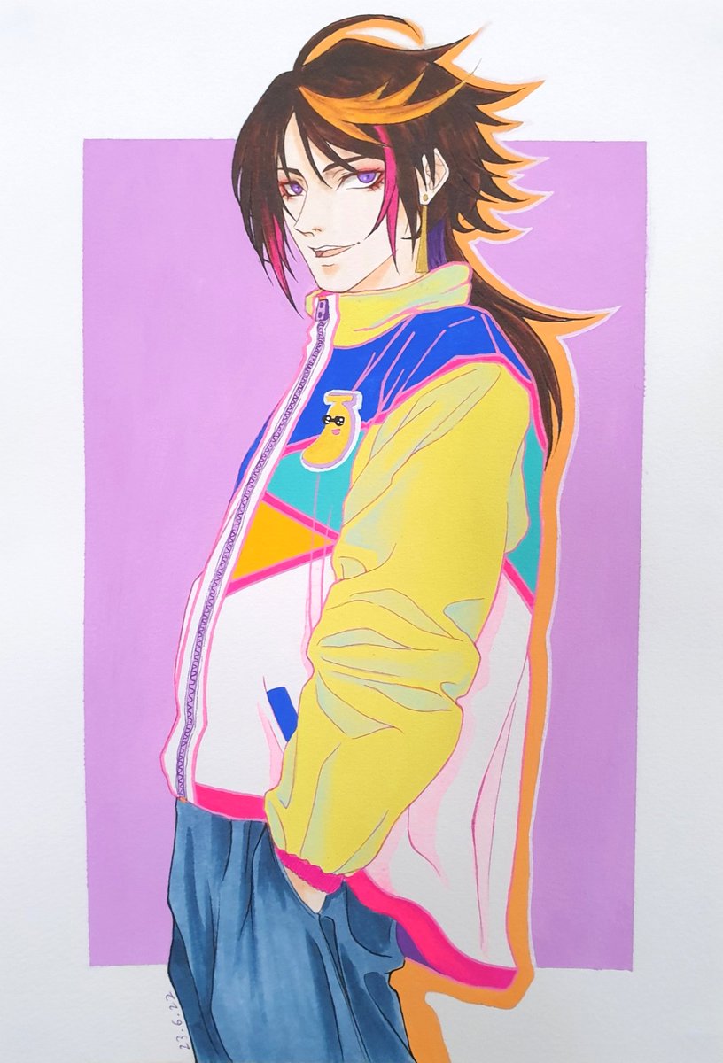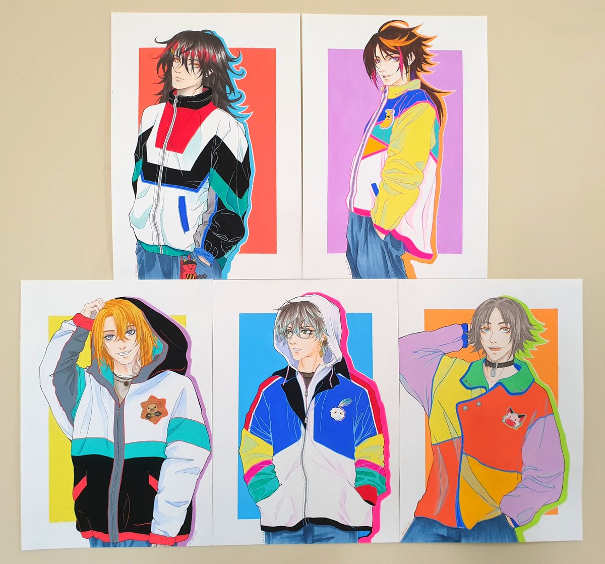 After 2 months, I've finally finished this series: Luxiem and 80's style windbreakers inspired by Vox & Ike's Horror Husbandos stream of 'Mirai Nikki!' Individual paintings are in the comments (1/6) #Luxiem #Akurylic #YaminoArt #drawluca #Ikenography #MystArt