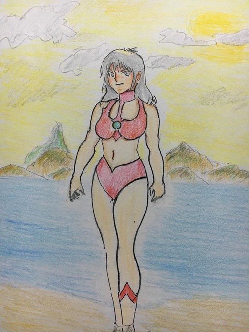 #ビキニの日 もう随分昔の過去絵です。 以外と描いていたんですね😅 pixivの「ウルトラ水着企画」に投稿した絵なのでビキニが初代ウルトラ風になっています😁