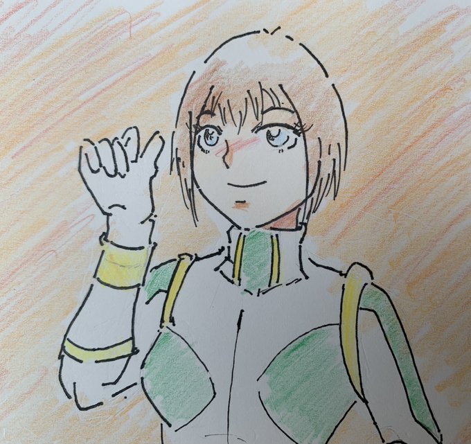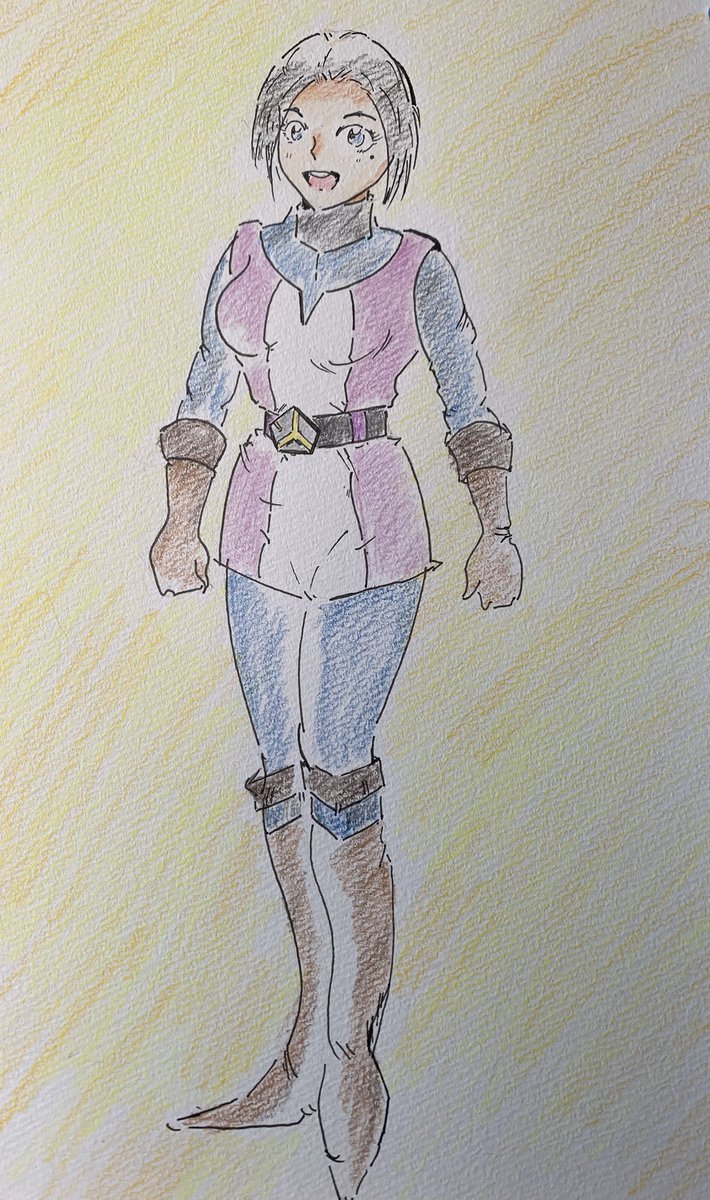 27 92 #アナログ絵 #色鉛筆 #PFSOZ #ザリア軍 #ゲフェング学園 前のピクファンキャラに色付けました。 クラスは「剣士」です。 22/10/23 16:58