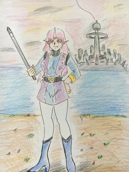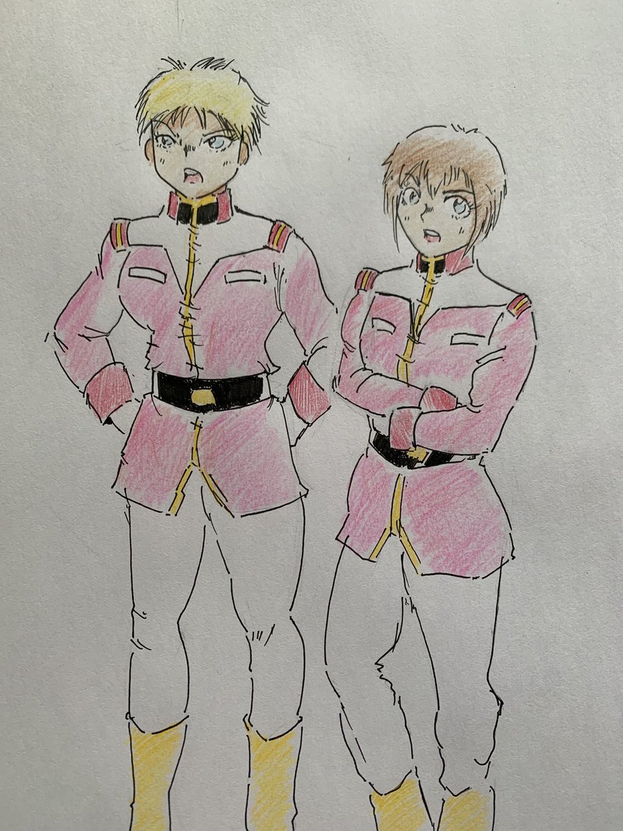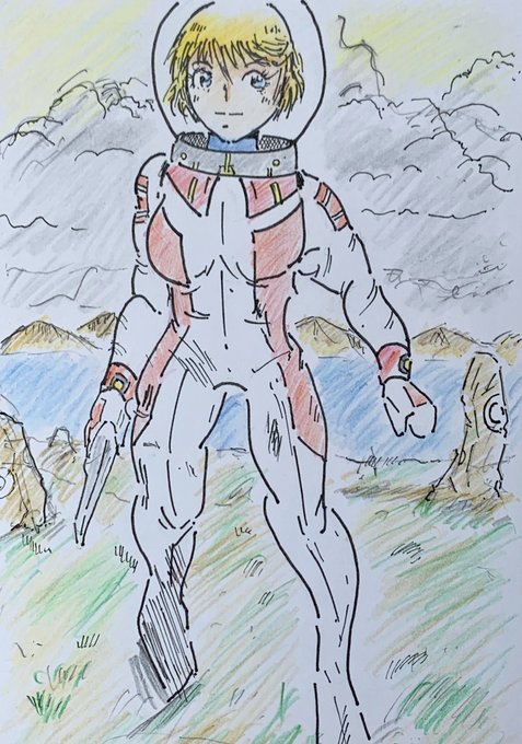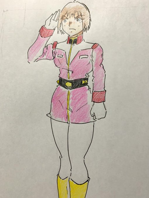 21 78 色塗りのリハビリで描いた絵です😀 #アナログ #色鉛筆 #ラクガキ #ガンダム #ピンク制服 #今月描いた絵を晒そう 23/01/29 19:43