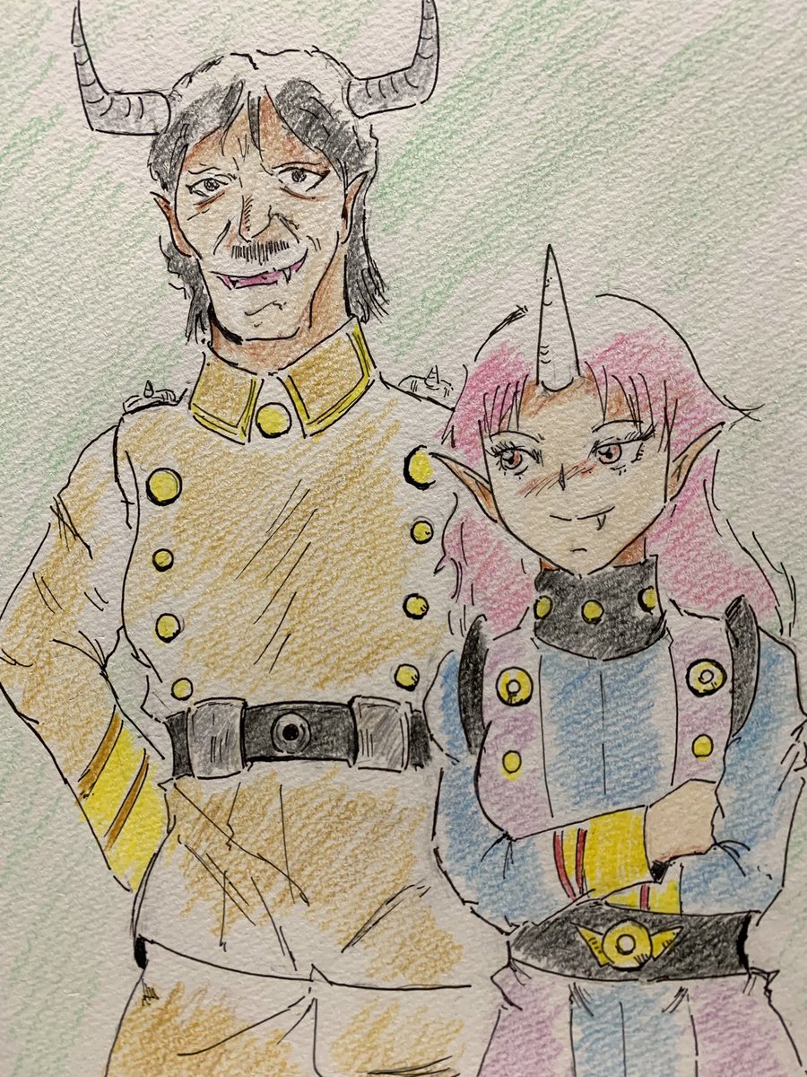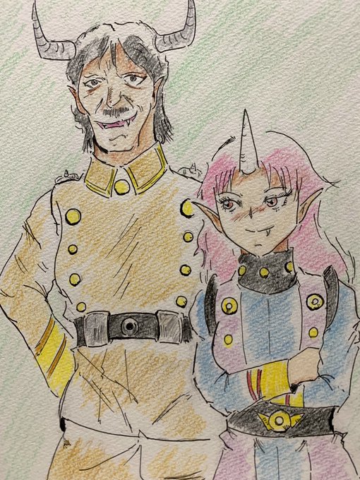 今日は節分と云う事で再度ヒドラー元帥を描きました😂 隣にいる女性は彼の部下で百人衆「女豹鬼」(オリキャラ)です。 #ゲッターロボG