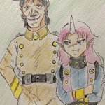 17 74 今日は節分と云う事で再度ヒドラー元帥を描きました😂 隣にいる女性は彼の部下で百人衆「女豹鬼」(オリキャラ)です。 #ゲッターロボG 23/02/03 22:05