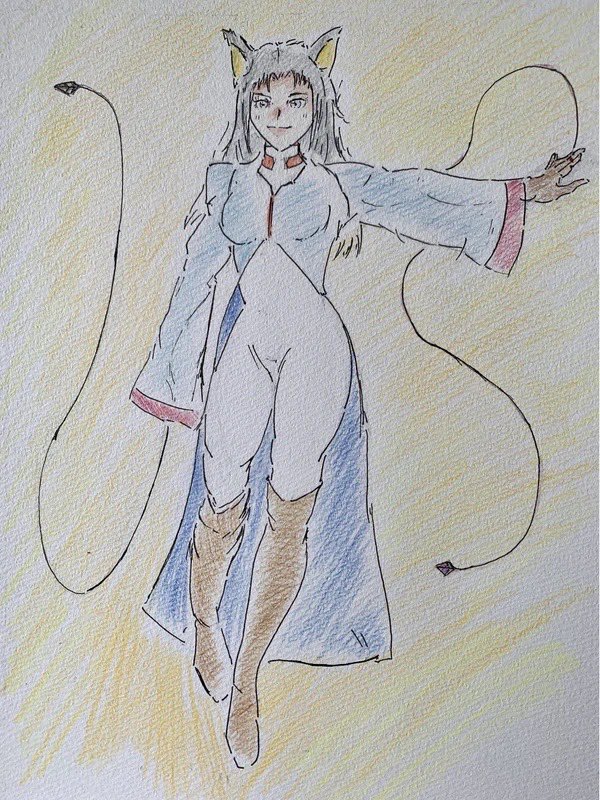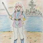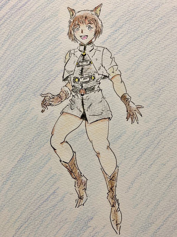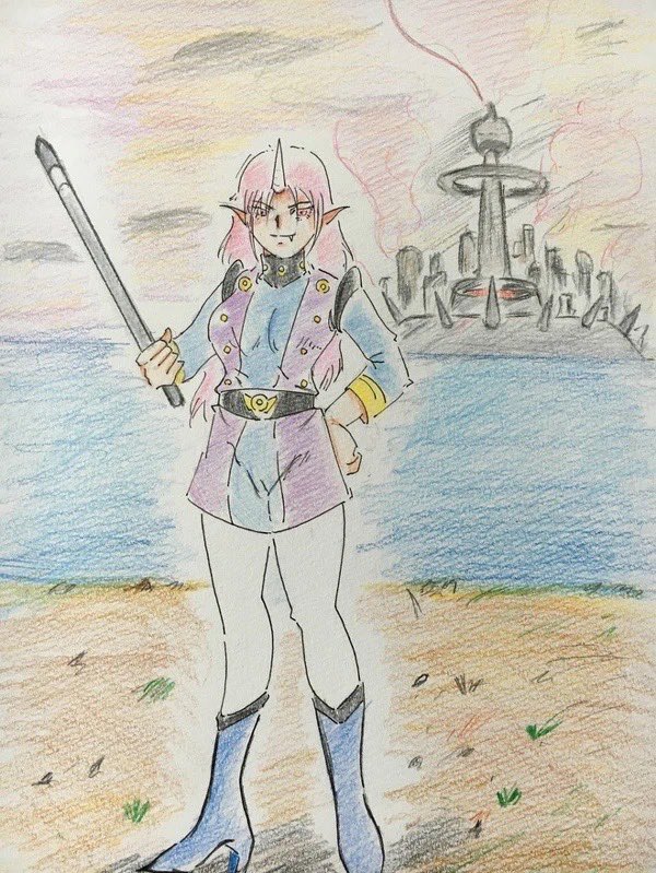 #アナログ絵 #色鉛筆 #PFSOZ #ザリア軍 #ゲフェング学園 前のピクファンキャラに色付けました。 クラスは「剣士」です。