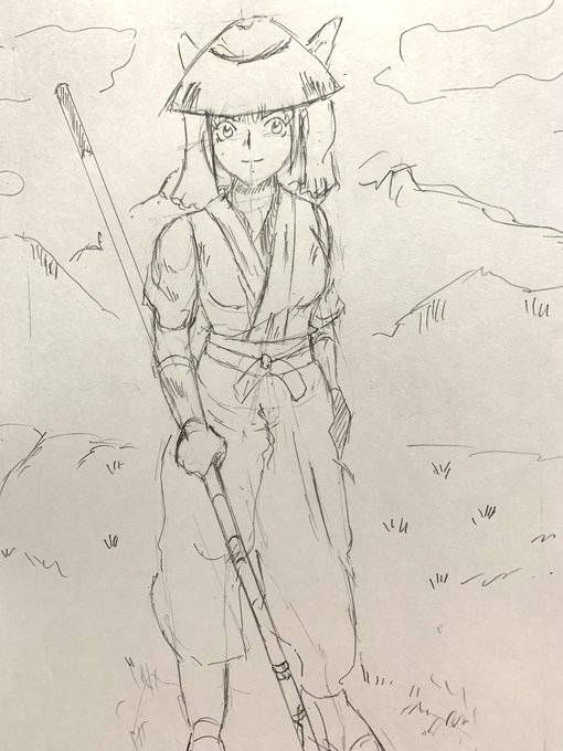 朝のラクガキ。 新ジャンル挑戦を兼ねて「足軽娘」を描きました😅 そもそも時代劇が好きとプロフに書いていながら着物を描いていないのは変ですね。