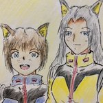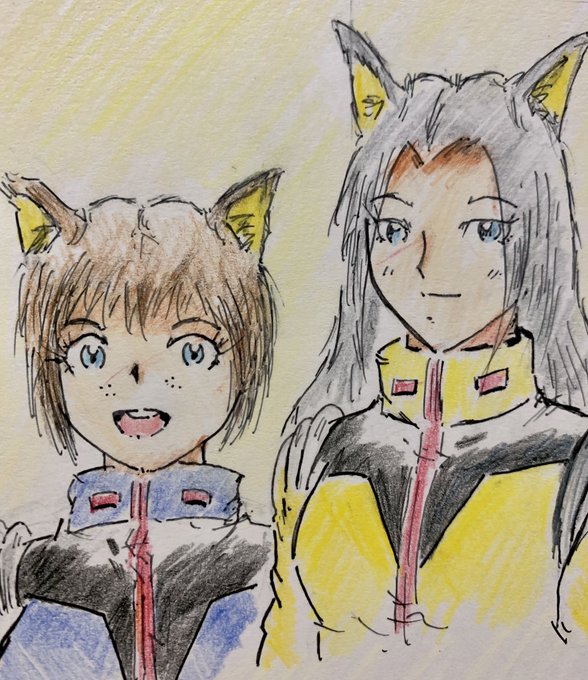 #女の子二人のイラストを貼る見た人もやる 過去絵ですみません😥 うちの看板娘はガイキングのコスプレ週間になってますがノーマルスーツも着てます😅