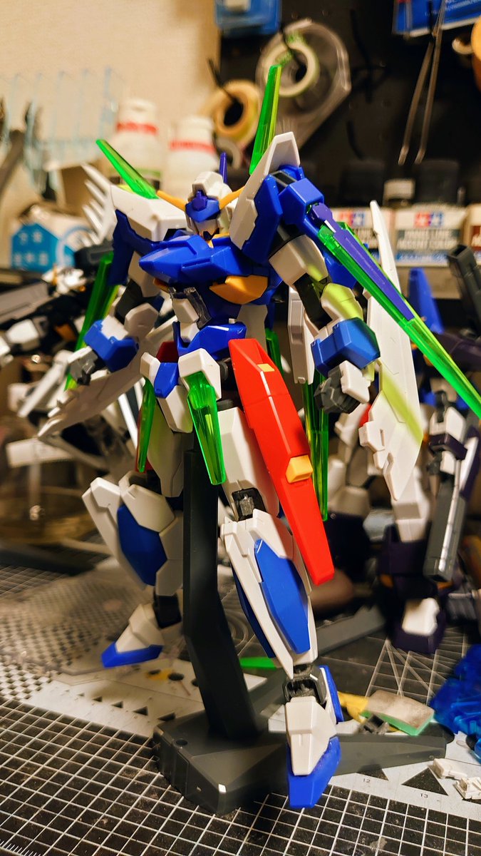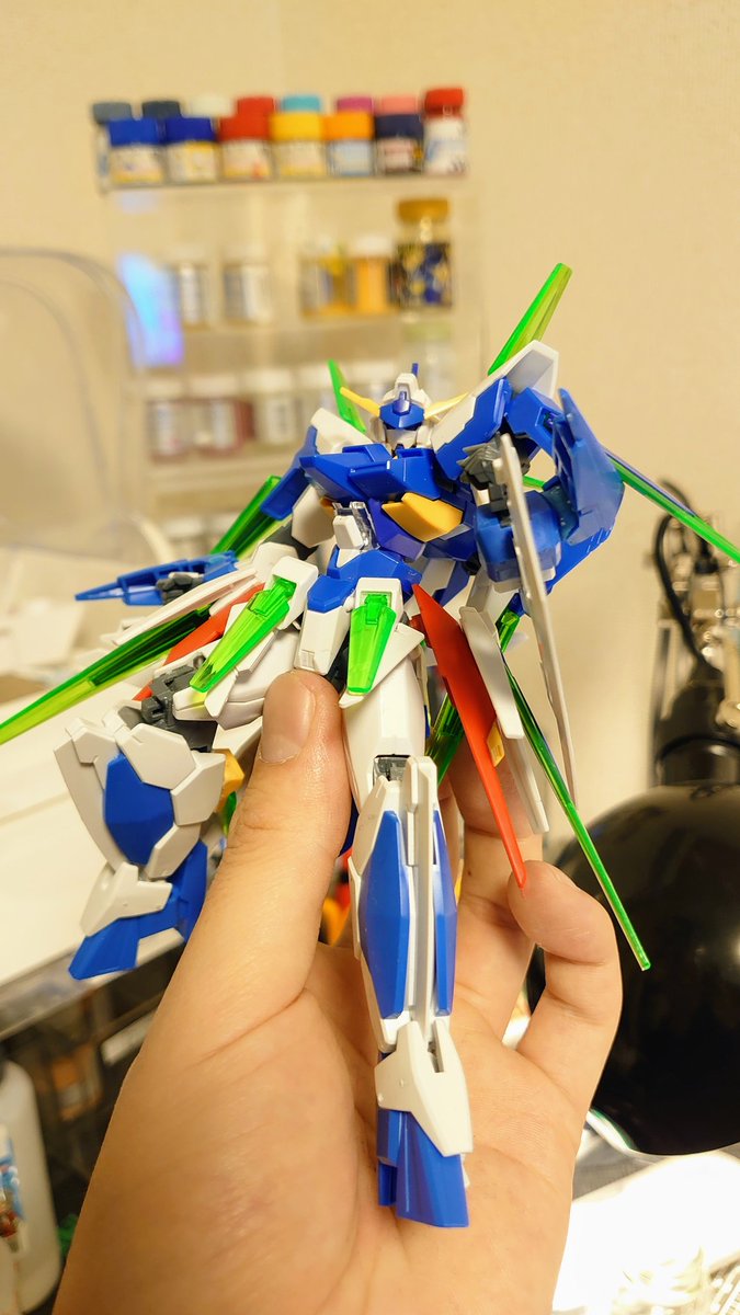 #ガンプラ #ガンプラの画像を貼るとRTされると聞いて #ガンダムAGE デカール貼る前にオービタル組んでみました。 HJのmook本のカラーレシピを参考にしたんですが、いい感じにオレンジが仕事してくれてますね んで、DBもちょちょいと塗り直して さぁデカール貼りといきたいけど…
