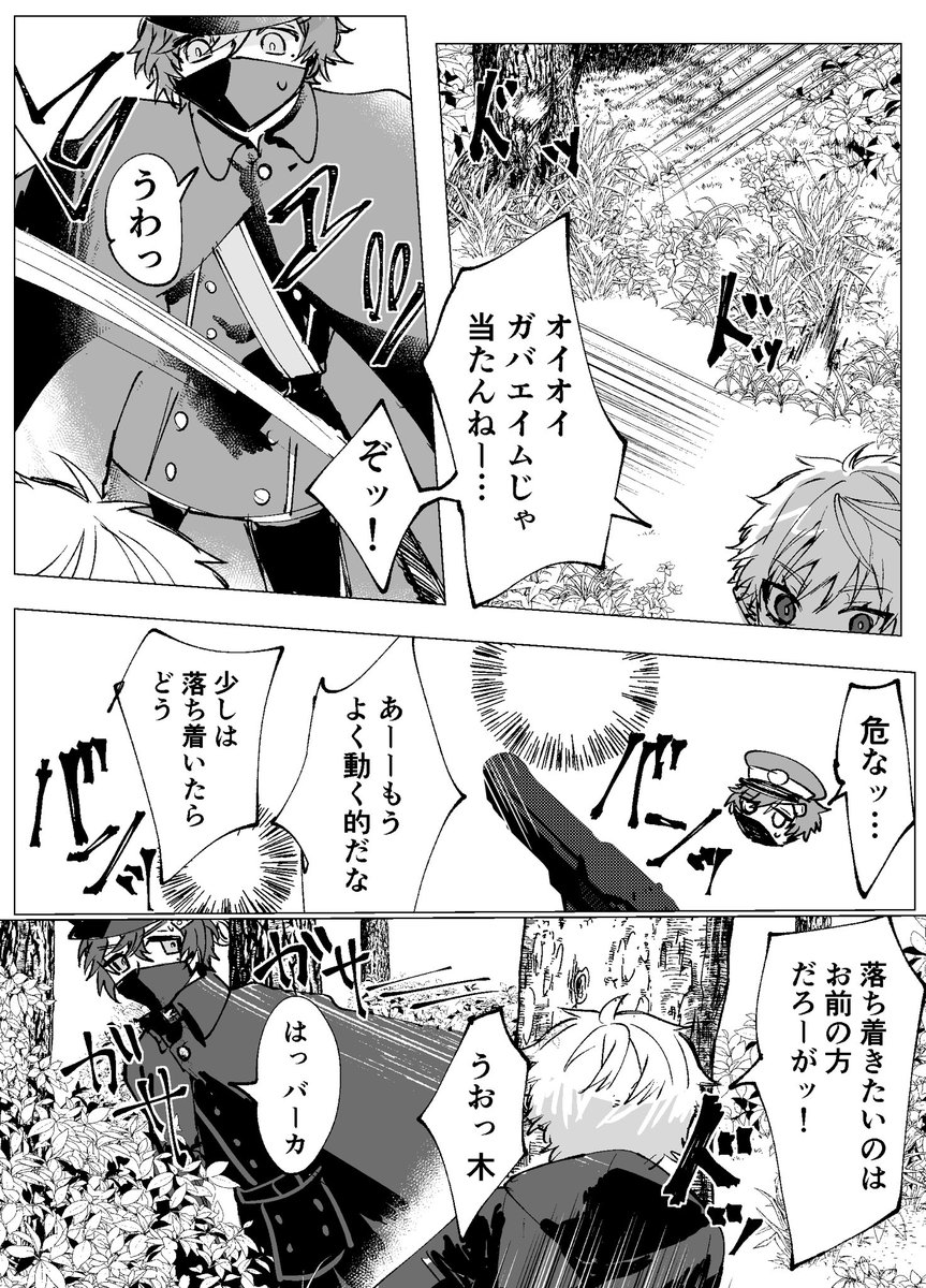 363 2098 #くろのあとりえ 軍人と吸血鬼の小話(1/3) ※2人が戦ってます 21/10/03 12:31