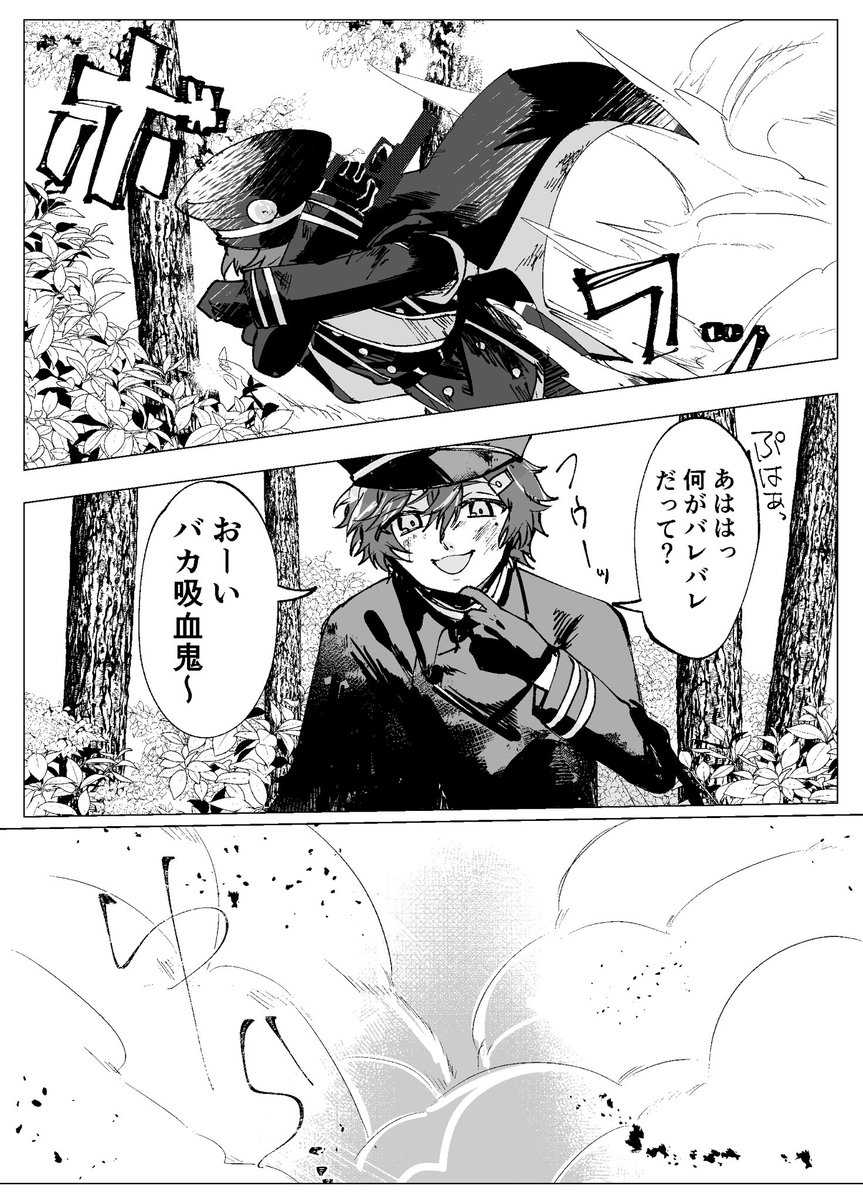 #くろのあとりえ 軍人と吸血鬼の小話(3/3) ※2人が戦ってます この後何やかんやあって最後は共闘する展開になって欲しいです