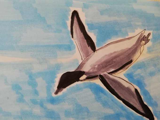 1 12 作品名 ペンギンの遊泳 と勝手に命名してみたり🤣 #コピック #イラスト #ペンギン #まだまだ色が足りないよ🤦♂️ 20/12/07 09:43