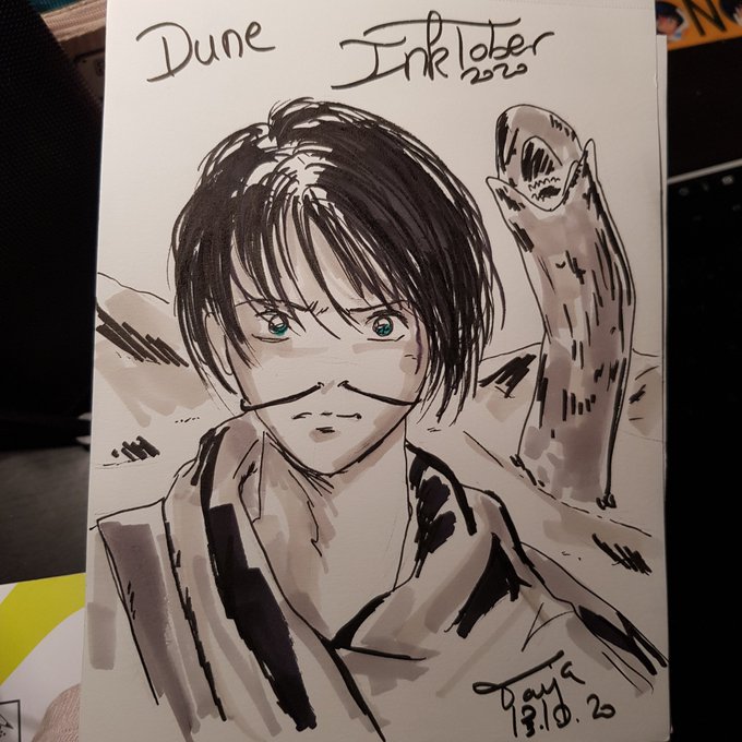 Le thème d' #inktober2022 d'aujourd'hui c'est le tatou... Je suis obligée de rendre hommage à John ! #thevampiredieinnotime