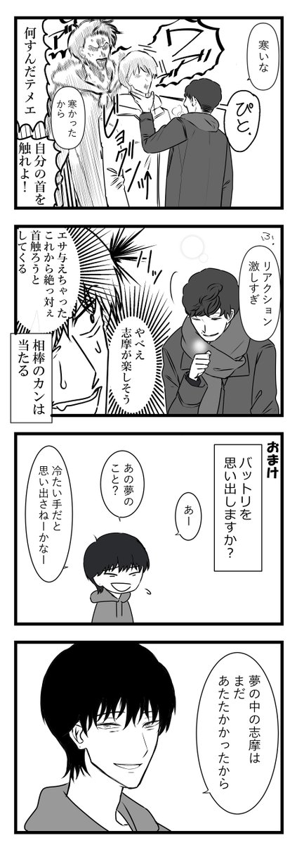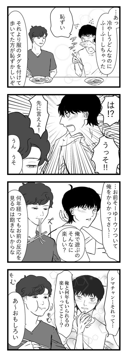 かまってくださってありがとうございました🙇恥じらい…?恥じらい!これは恥じらいだ!!しまちゃんの顔にたくさん斜線が!! 照れが危険 twitter.com/tantano4o4/sta…