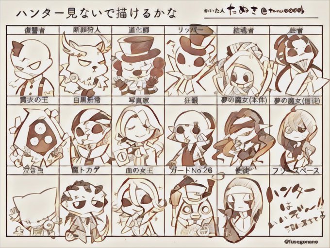 #ハンター見ないでかけるかな 1番下の段が描けてないな、特にルキノさんは違う_(:3 」∠)_ でもピエピと夢の魔女は最高によく描けたよ!