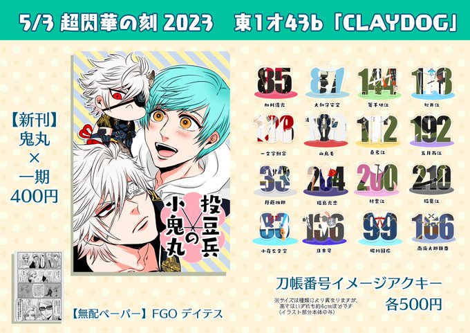 11 10 おしながきもでけた! 鬼いち新刊・既存アクキー・デテペーパーもっていきます! pixiv.net/artworks/10765… 23/04/30 12:23