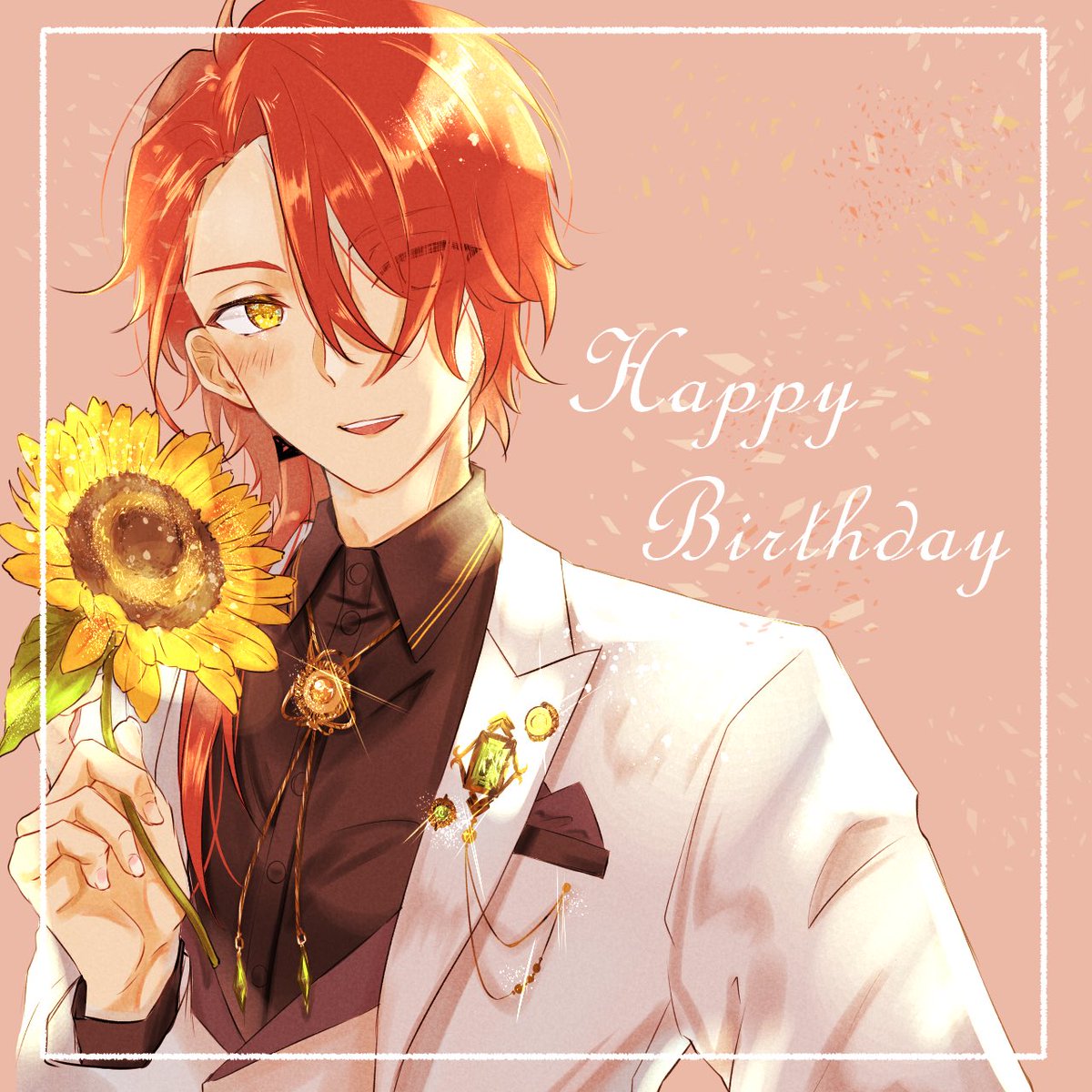 騎士様おめでとう〜!🥳👏🎉 ちなみに、、 向日葵は8月6日の誕生花 花言葉は「私はあなただけを見つめる」 騎士様が見つめられる人って… #カイン誕生祭2021 #まほやく_FA