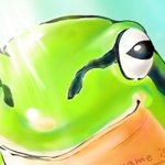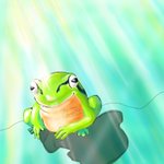 ●デジタル絵 練習 『アンニュイ蛙』 こだわり ①腕の影→ 上から光、下からも光の反射 ②指先の影(影と緑の境界付近)に、ワントーン暗い線を入れて、リアルな影感を出し、光も際立たせる。 ③体のツヤぷに感 #イラスト好きな人と繋がりたい #アトリエの系譜 #絵師さんと繋がりたい