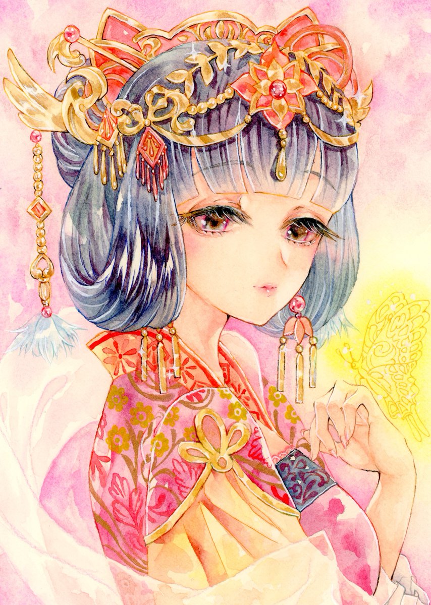 ふつつかな悪女ではございますが 【朱貴妃 朱 雅媚】 ただただ悲しい過去を持つお方・・・。 衣装はアレンジしています。 手の蝶は現皇后の黄家の黄色で。 小説版は読んでいないのでまだ結末はわかりませんが、幸せになってほしいです。 #透明水彩 #ふつつかな悪女ではございますが #イラスト