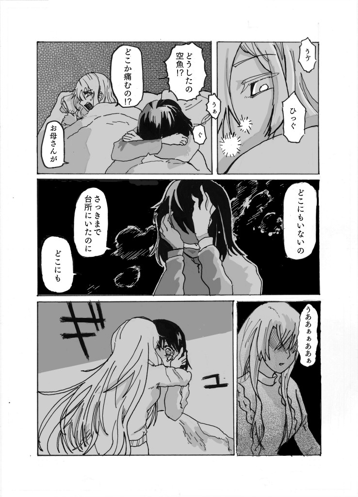赤い人襲撃後の夜の漫画描きました。 空鳥です。