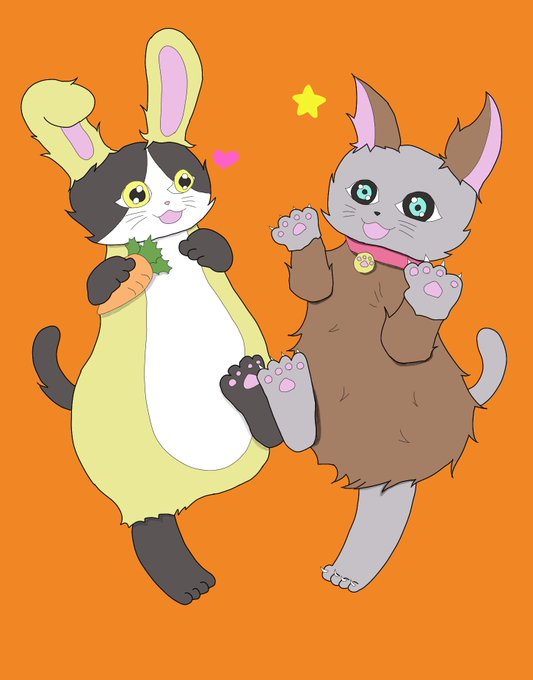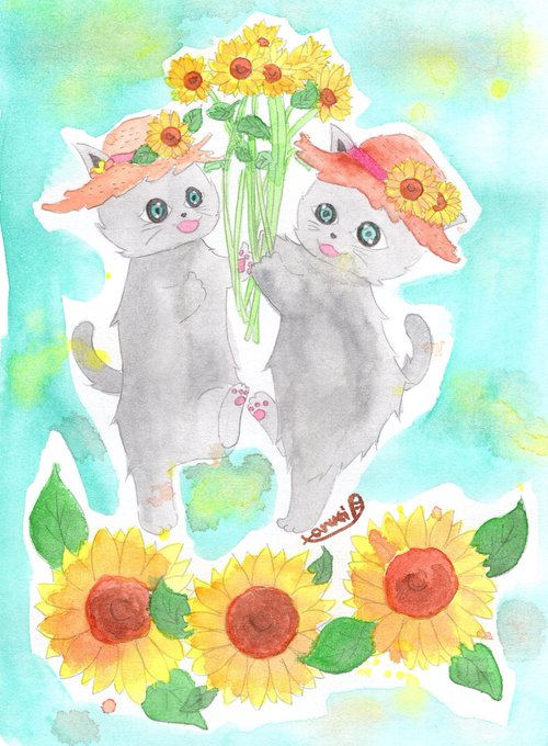 ミルクとくるみと🌻💞 #イラスト #お絵描き #猫