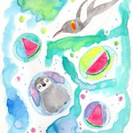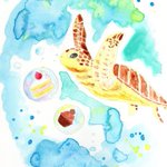 暖かくなってきた♪✨✨✨ #イラスト #お絵描き #アート #絵 #水彩画 #アナログイラスト #透明水彩 #猫 #ペンギン #ウミガメ #タコクラゲ