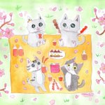 春になってきた♪💖💖💖 #イラスト #お絵描き #アート #絵 #水彩画 #アナログイラスト #透明水彩 #猫 #うさぎ #サクラ